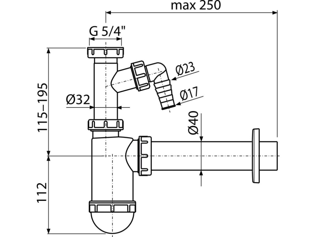 Sifon umyvadlový DN40 s přípojkou a převlečnou maticí 5/4" - A43P